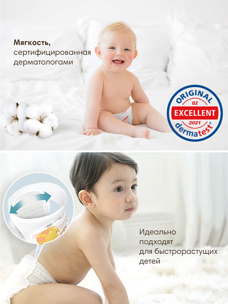 Подгузники от корейского бренда K-MOM это инновационная разработка в индустрии одноразовых подгузников, которая содержит 4-х ступенчатую систему поглощения жидкости, что минимизирует протекание практически до нуля. Супер тонкие, ультрамягкие и дышащие подгузники подарят комфорт Вашему малышу и защитят его от аллергических реакций. Имеют немецкий сертификат DermaTest, с оценкой "отлично", полученный в 2020 году, что делает подгузник абсолютно безопасным.