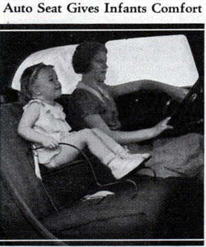 В апреле 1935 года американский журнал популярной механики Modern Mechanix опубликовал заметку о детском безопасном кресле, которое можно было использовать как для дома, так и для автомобиля. В заметке говорилось, что кресло установлено на стальную основу, которая крепится к днищу автомобиля, благодаря специальной рессоре.