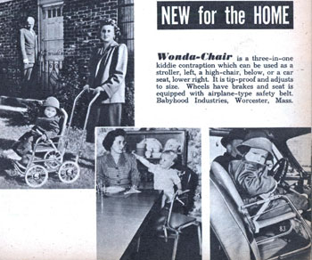 Но самым оригинальным изобретением того времени, пожалуй, можно назвать кресло Wonda. Три в одном – такое часто встречающееся в наше время понятие, а тогда настоящее ноу-хау: одновременно кресло для коляски, стульчик для кормления и автокресло.