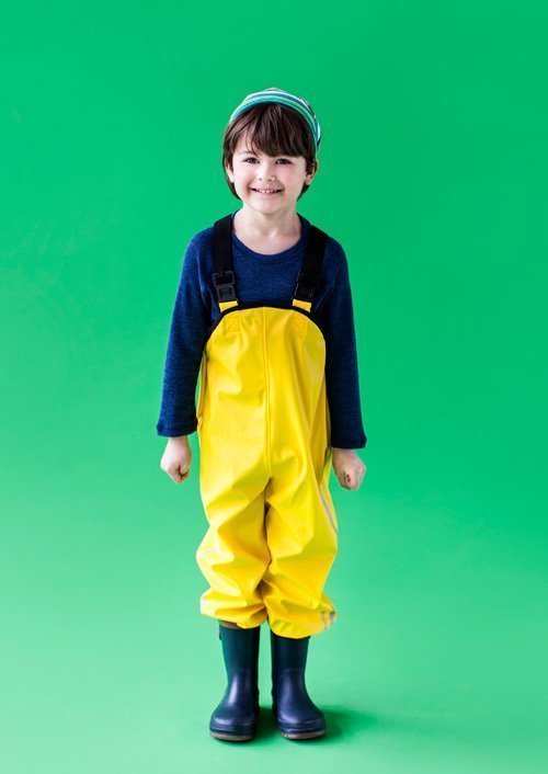 Резиновую одежду без подкладки можно использовать не только в межсезонье, но и прохладным летом. Удобно использовать штанишки-полукомбинезон без верхней куртки, надев их поверх флисовой курточки. Ведь когда ребенок бегает по лужам, достаточно защитить его до пояса. Если же пойдет дождь, то можно воспользоваться непромокаемой курточкой - она может быть всегда под рукой, так как не занимает много места в коляске или маминой сумке.