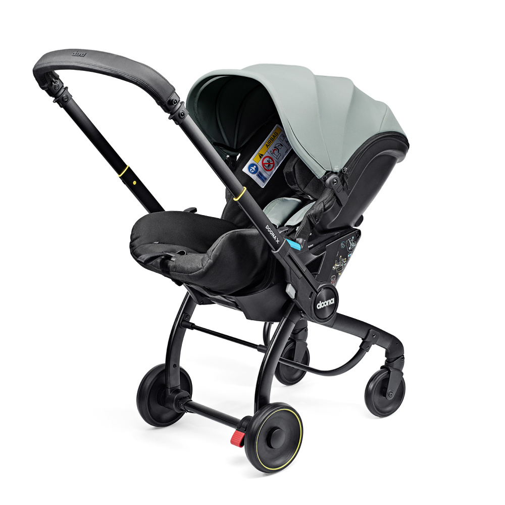 С Doona вы не будете бояться потревожить уснувшего малыша, чтобы вынуть его из машины или уложить в автомобильную люльку. Теперь вы можете погулять с ребенком на улице, катая его в коляске, а затем сложить ее одним движением, не доставая малыша. Колеса у модели интегрированные, их не нужно отстегивать. Просто установите люльку на сидение против хода движения автомобиля при помощи штатного ремня безопасности либо на отдельно приобретаемую базу Isofix.