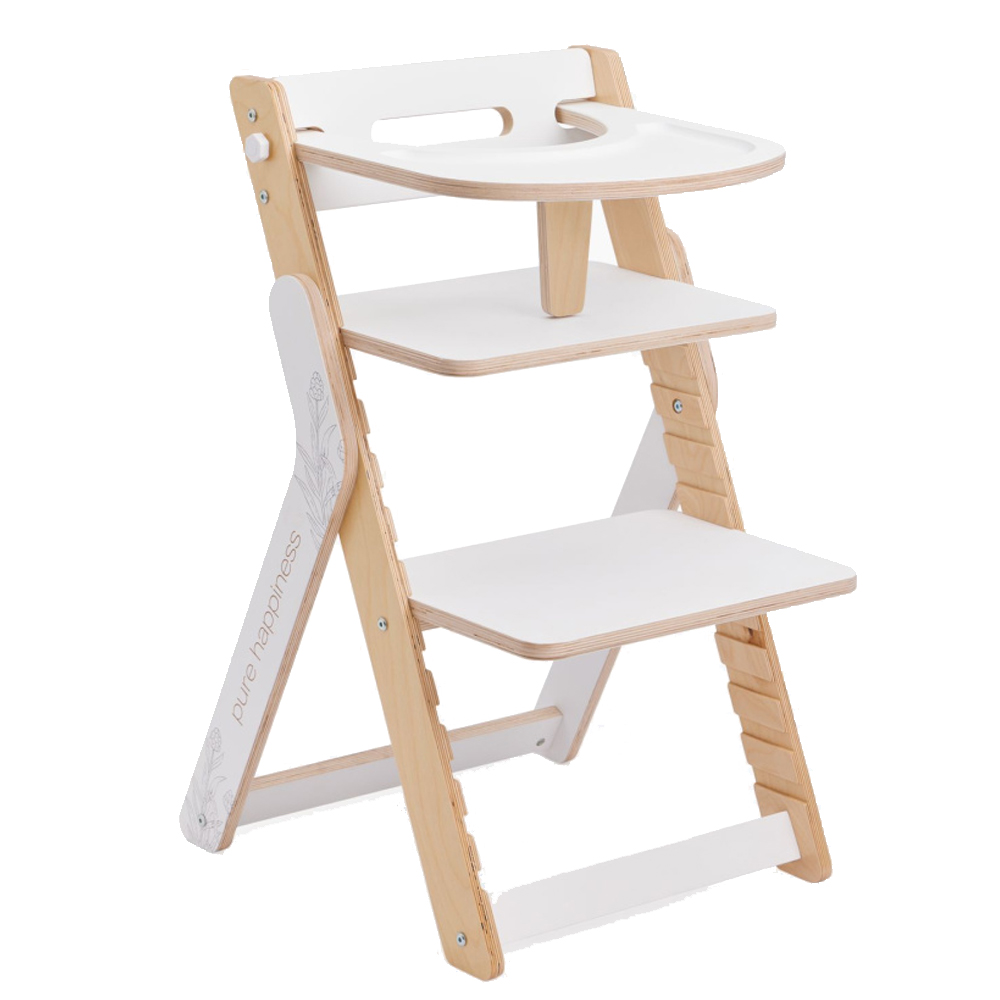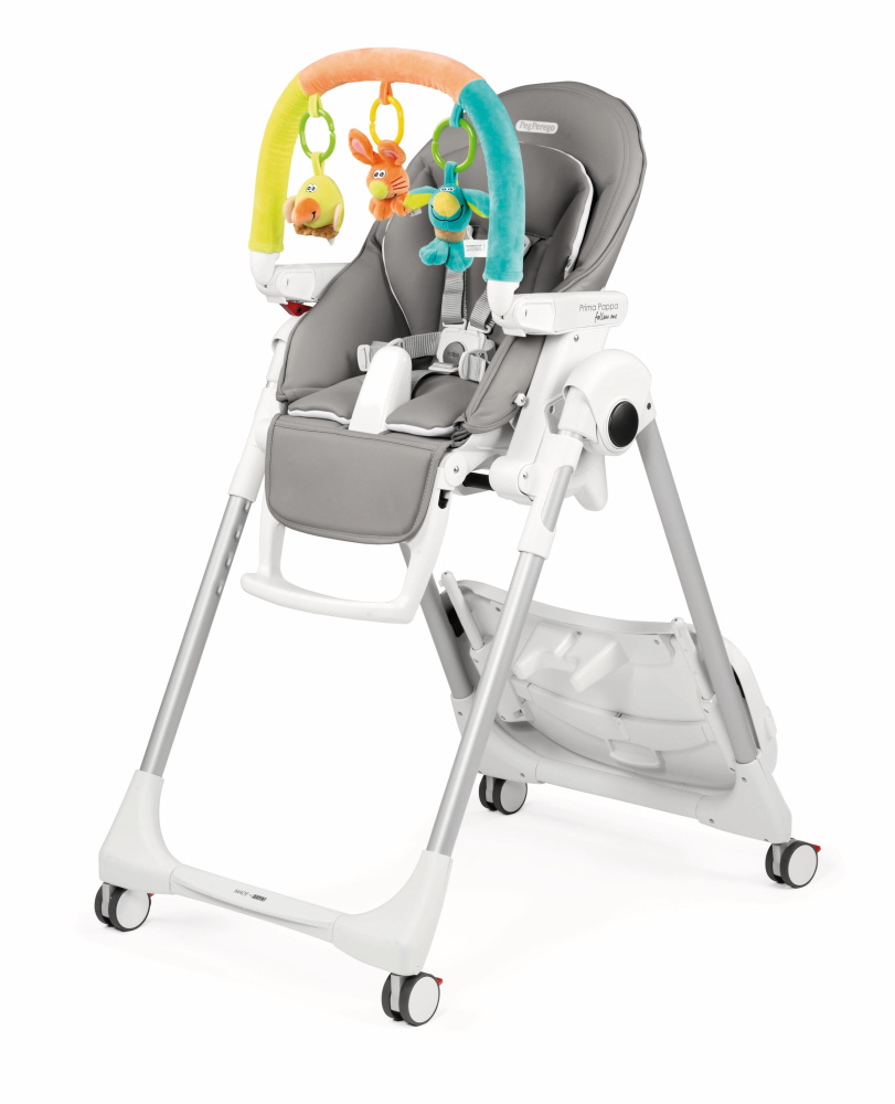 У креслица могут быть дополнительные аксессуары: подлокотники, держатель для подвесных игрушек, съемные колеса. Его можно использовать не только чтобы кормить ребенка, но и как передвижное сиденье или столик для творчества, игр.
