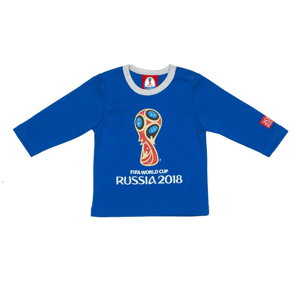 Яркая футболка василькового цвета с отделкой «серый меланж» изготовлена из высококачественного хлопка качества пенье. Яркий принт с символикой Чемпионата мира по футболу FIFA 2018 в России™ нанесён безопасной краской на водной основе. В такой футболке ваш малыш гарантировано окажется в центре внимания не только на детской площадке, но и на футбольном стадионе.