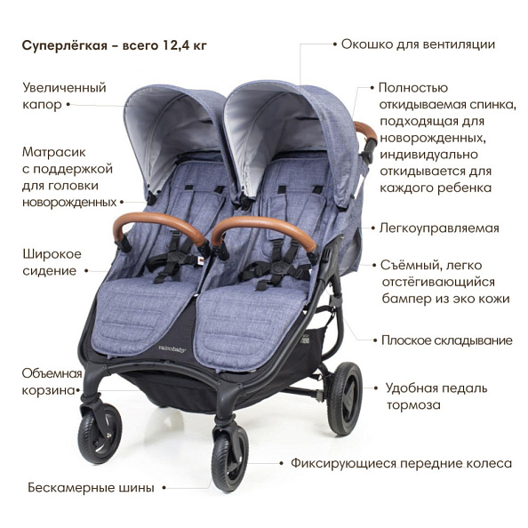 - полностью откидываемая спинка, подходящая для новорожденных, индивидуально откидывается для каждого ребенка