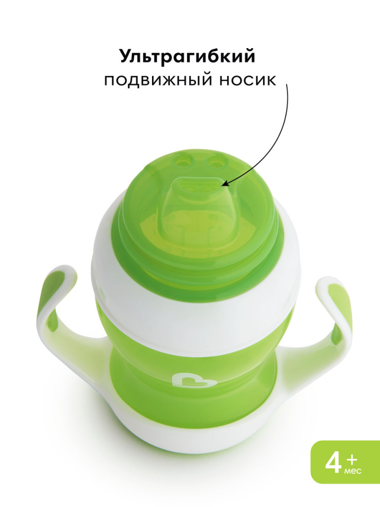 Этот обучающий поильник — лучший помощник при переходе ребенка к взрослой чашке! Мягкий и гибкий носик обеспечивает простой и быстрый доступ к напитку; он движется в том направлении, в котором ребенок пьет. Эргономичная форма и удобные ручки созданы специально для маленьких рук.