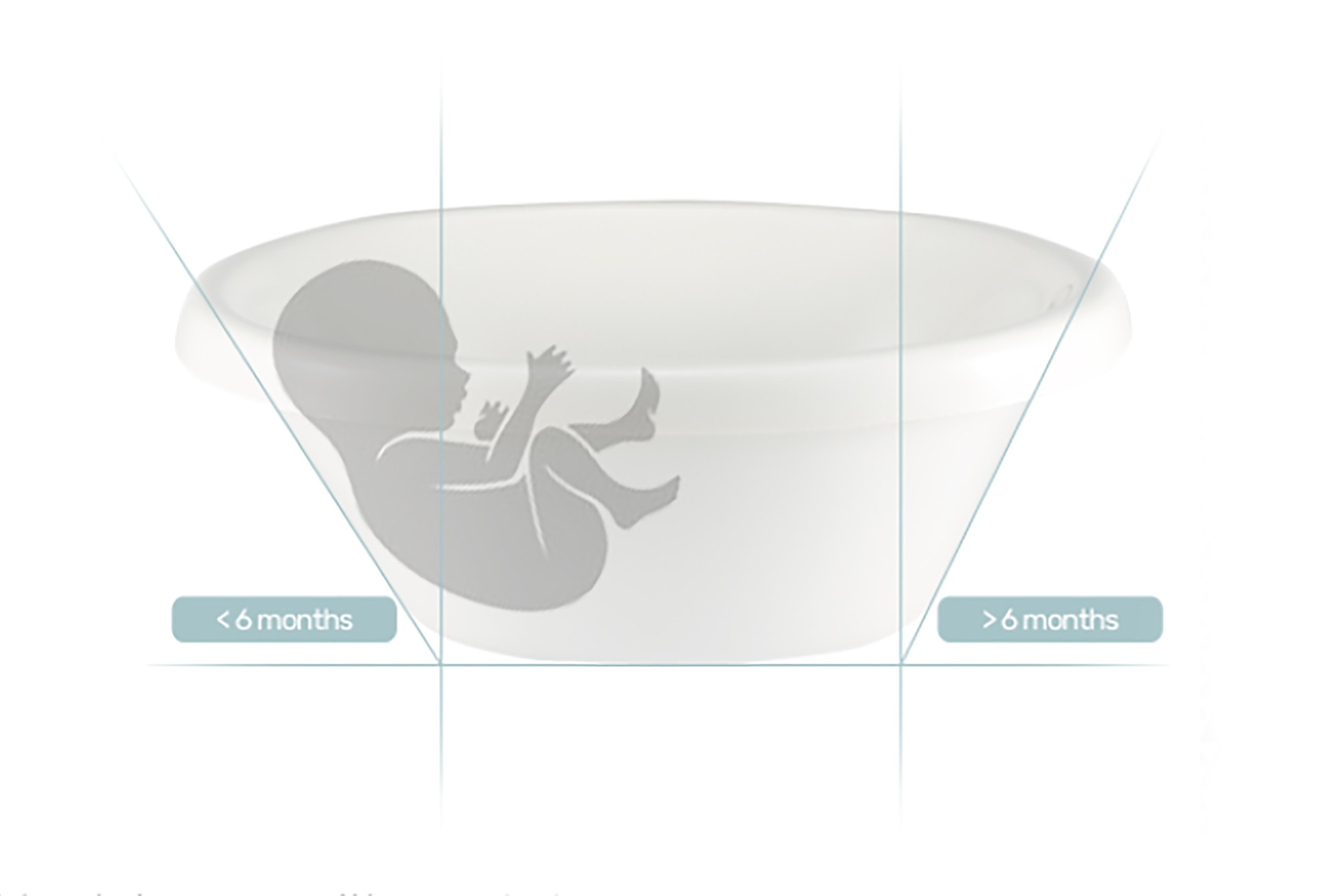 Ванная имеет две стороны для купания детей до 6 месяцев и после того, как малыш уверенно сядет. Для купания ребенка с рождения ребенка необходимо поддерживать. На схеме сторона для сидячего ребенка определена как с 6 месяцев, но это может быть немного позже. Многие семьи переходят на купание в позиции сидя, когда ребенок хорошо сидит без поддержки.