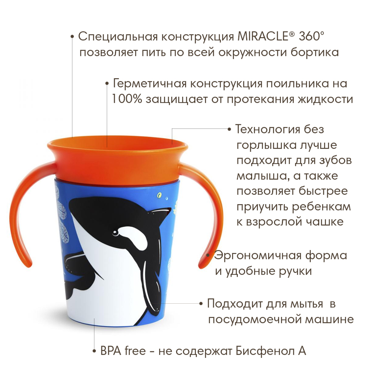 - специальная конструкция MIRACLE® 360° позволяет пить по всей окружности бортика