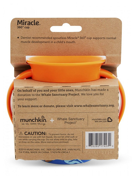 Приобретая этот поильник-непроливайку, вы помогаете Munchkin внести важный вклад в деятельность Международного фонда защиты животных (IFAW) и проекта «Китовый заповедник». Вы помогаете сделать важное дело — спасти редкие виды животных от полного исчезновения. А если учесть тот факт, что поильник Munchkin MIRACLE® 360° является самым популярным поильником в мире, - животные точно будут спасены!