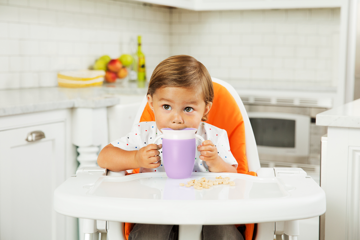 Поильник-непроливайка Munchkin создан специально для приучения малыша пить из взрослой чашки.