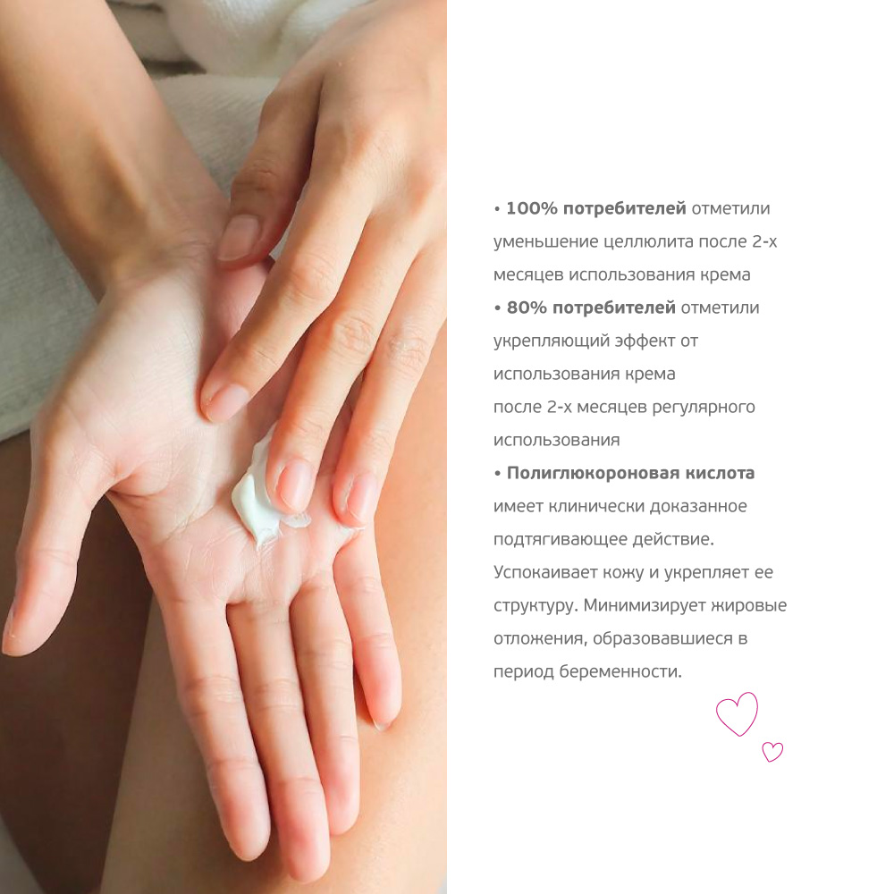 Крем содержит комплекс подобранных активных веществ, которые помогают коже вернуть упругость и тонус после родов.