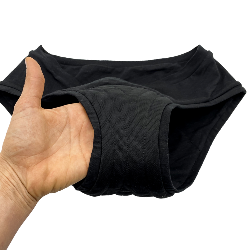 - Внутри трусов вшита непромокаемая мембрана, которая пропускает воздух и защищает от протекания