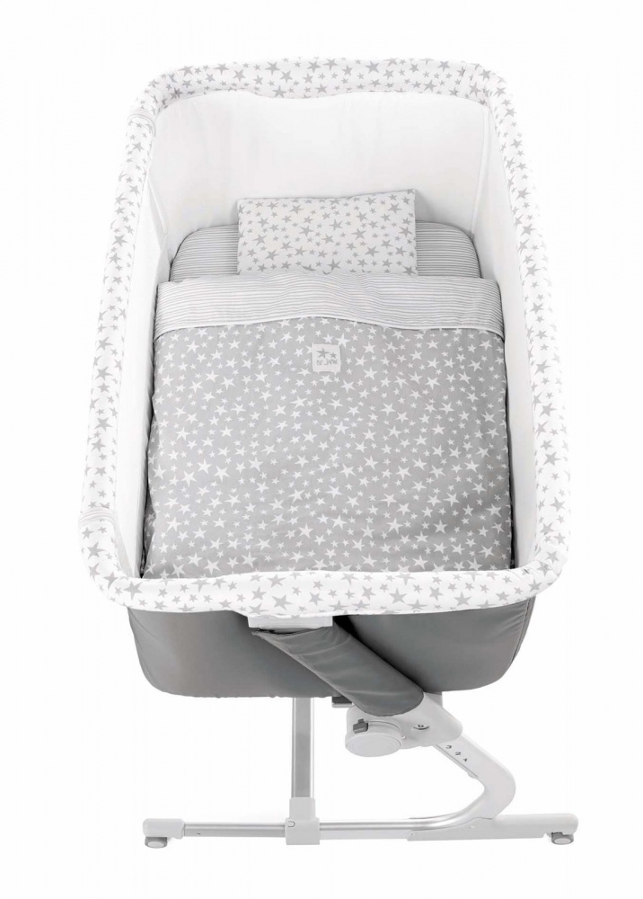 Это удобное и безопасное решение. Ребенок ограничен с трех сторон и имеет собственное спальное место, но при этом находится вблизи к своим родителям. Высоту детской кроватки можно свободно регулировать благодаря телескопическим ножкам, что позволяет выбрать одно из шести положений - от 68 до 79 см.
