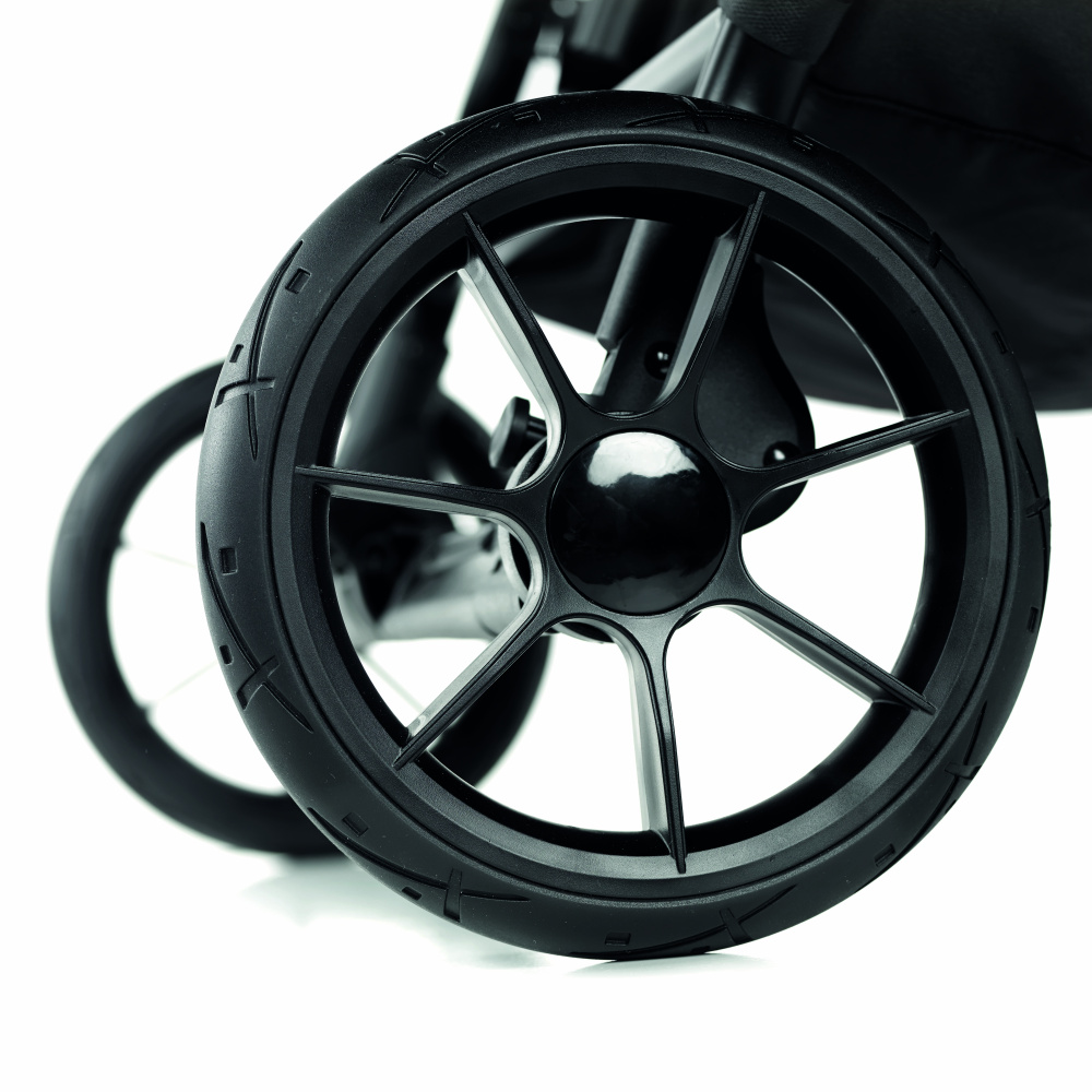 Коляска оснащена поворотными передними колёсами с блокировкой