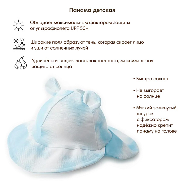- Широкие поля образуют тень, которая скроет лицо и уши от солнечных лучей