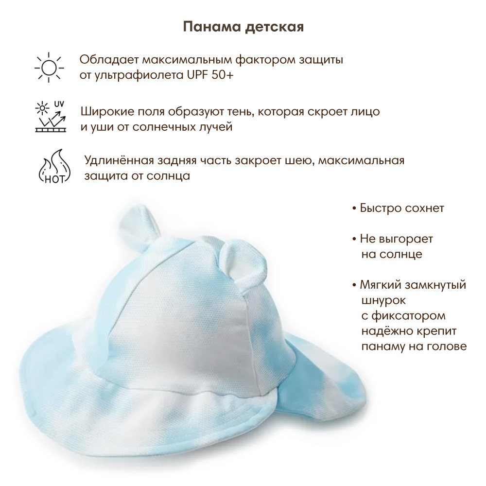 - Широкие поля образуют тень, которая скроет лицо и уши от солнечных лучей