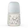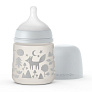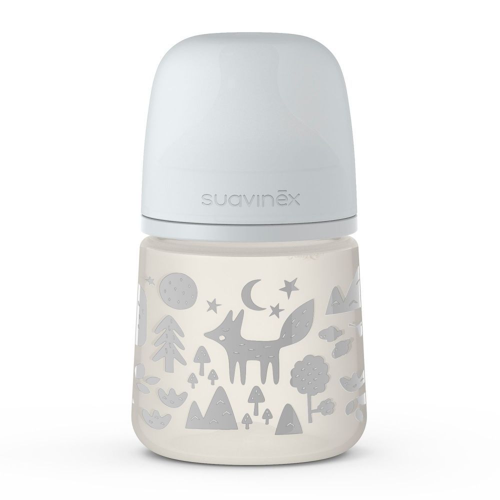 Бутылочка сделана из полипропилена - прочного и нетоксичного материала. Отверстие в соске физиологической формы обеспечивает слабый (S размер) поток жидкости. Благодаря специальному антиколиковому клапану в организм крохи попадает меньшее количество воздуха во время кормления, что предотвращает возникновение коликов. Четкая мерная шкала на бутылочке позволит родителям приготовить нужное количество смеси с высокой точностью. Защитный колпачок не даст пролиться жидкости во время взбалтывания и транспортировки. Широкое горлышко бутылочки позволяет готовить смеси прямо в ней. Эргономичная форма бутылочки удобна для захвата.