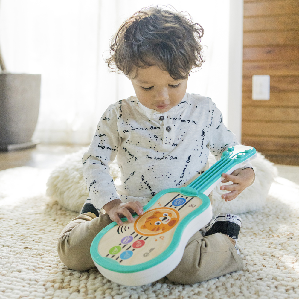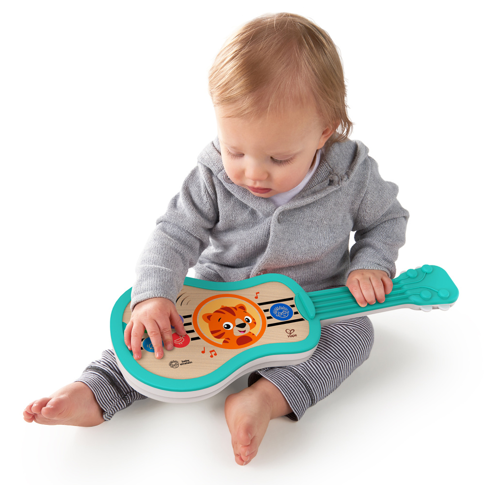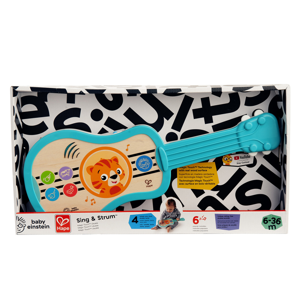 С помощью музыкальной игрушки для малышей "Гавайская гитара" ребенок может сочинять звуки одним волшебным прикосновением. Воспроизведите 6 классических популярных мелодий, нажав синюю кнопку. Малыши также могут создавать песни с помощью гитары, банджо, коровы и утки. Эта деревянная музыкальная игрушка, идеально подходящая для малышей, помогает представить причинно-следственную связь и способствует развитию двигательных навыков, позволяя вашему ребенку открыть для себя магию музыки. Малыши могут экспериментировать с музыкальным сочинением на этой деревянной игрушечной гавайской гитаре.