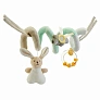 My sweet Doudou - мягкая игрушка на коляску в форме спирали будет сопровождать вашего малыша во время первых прогулок, не давая ему заскучать. 3 игрушки-подвески - зайчик, облачко-зеркальце и погремушка с разноцветными бусинами - развлекут ребёнка. Благодаря удобным завязкам по краям игрушки, её легко прикрепить к бамперу коляски. Дизайн понравится не только малышу, но и маме с папой.