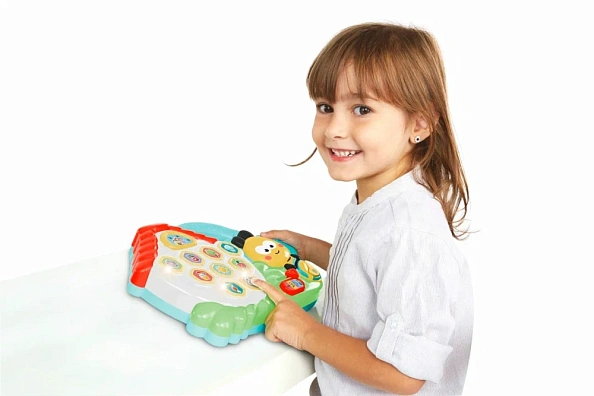 Первый электронный игровой центр для малышей, который расскажет о мире пчел. Игрушка говорит на 4 языках (русском, английском, немецком и французском). Слушая и запоминая последовательность истории про пчёл, ребенок научится располагать элементы в правильном порядке. 10 светящихся интерактивных кнопок. Нажмите их, чтобы открыть для себя что-то новое и ответить на вопросы. 9 бумажных карточек для воспроизведения последовательностей.