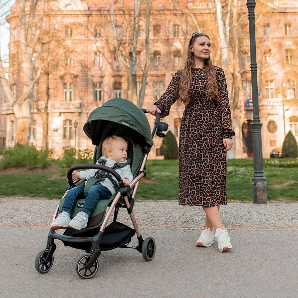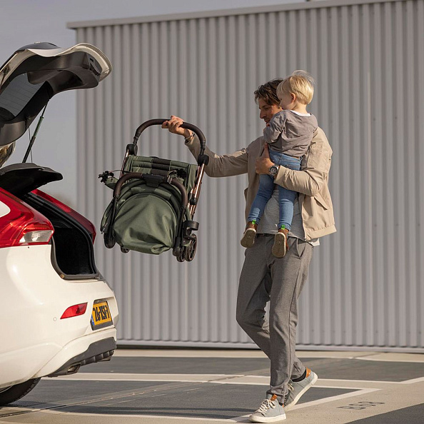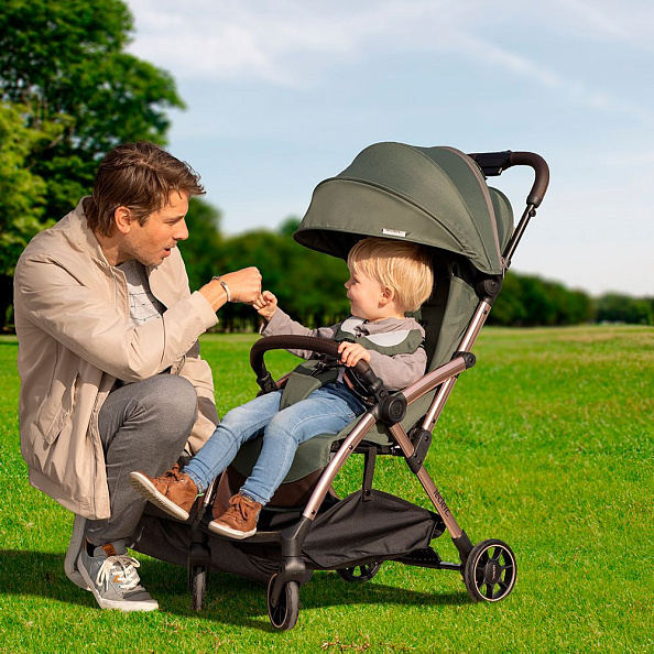 С помощью нажатия одной кнопки коляска быстро складывается и раскладывается одной рукой. Благодаря системе автоматического складывания ни один момент не пройдёт без присмотра.
