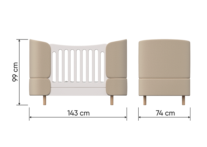 - Габариты кроватки ДхШхВ: 143х74х99 см