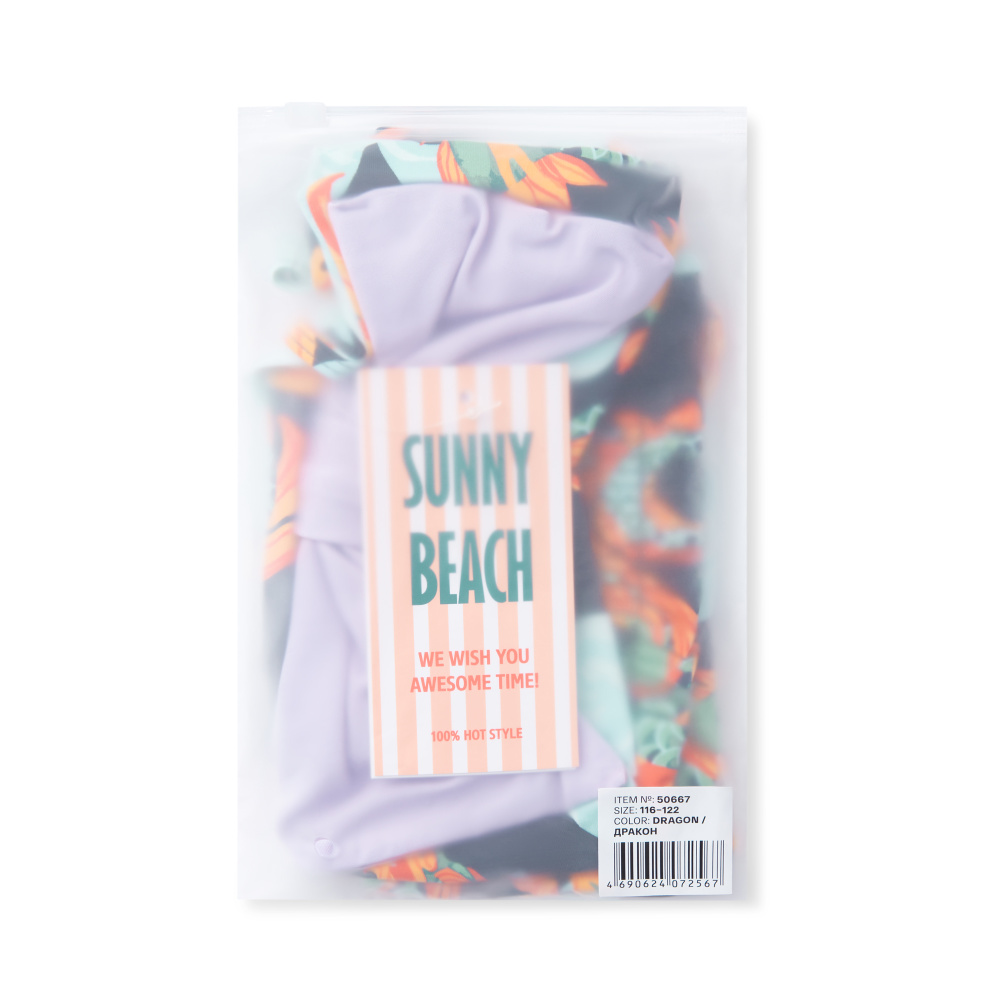 Изготовлен из быстросохнущего материала с UPF50+, который защищает ребёнка от вредных лучей и дарит комфорт. Яркий дизайн обеспечит хорошее настроение и отлично выглядит на летних фотографиях.