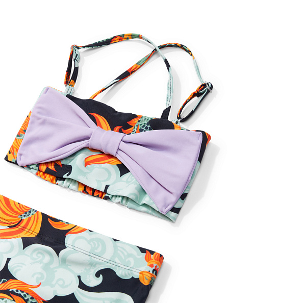 Двухпредметный купальник создан для активных игр в воде. Крестообразные лямки топа и мягкая резиночка на поясе плавок помогают надёжно зафиксировать костюм на ребёнке.