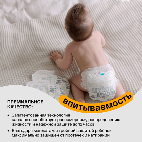 - БЕЗ ИНДИКАТОРА НАПОЛНЯЕМОСТИ: У подгузников BRAND FOR MY SON нет индикатора наполняемости, так как краски для индикаторов содержат вещество бромфеноловый синий, которое может стать причиной аллергических реакций.