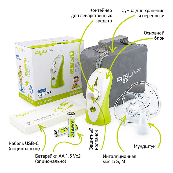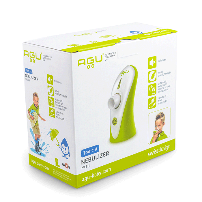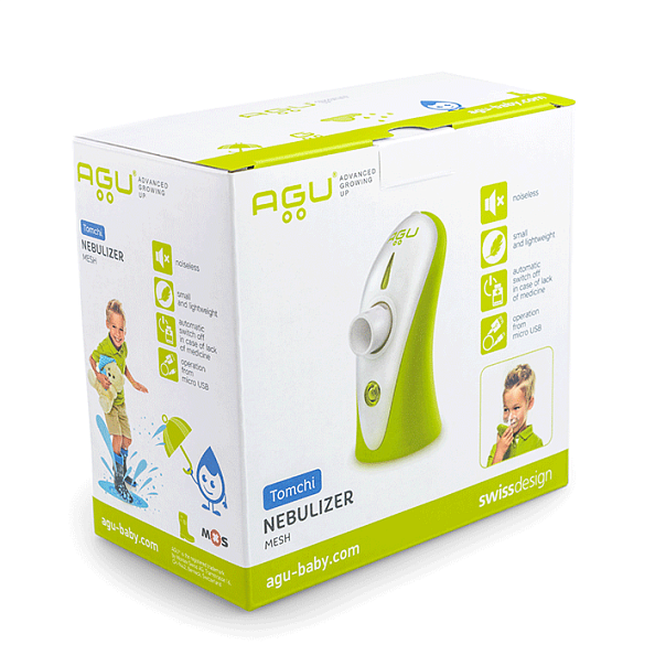 Такими характеристиками обладает детский меш-небулайзер Agu Baby Tomchi.