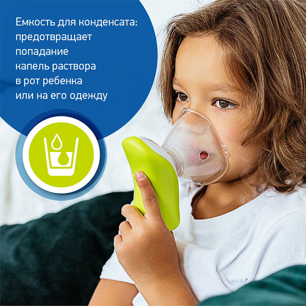 Есть емкость для сбора конденсата, что исключает попадание капель препарата на одежду ребенка или в рот.