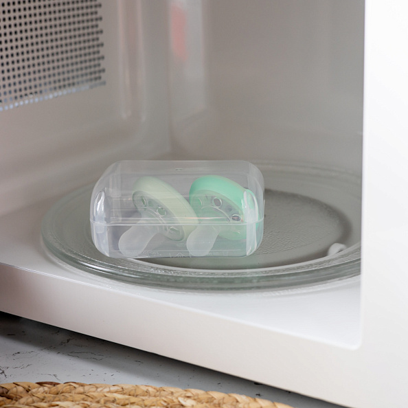 Пустышка не содержит BPA, она мягкая и гибкая, но в то же время прочная и долговечная. Изделие очень легко моется, не впитывает запахи. Пустышку можно использовать в стерилизаторе, мыть вручную или в посудомоечной машине.