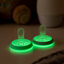 Эта пустышка светится в темноте до 8 часов, что позволяет родителям находить пустышку в темной комнате, не беспокоя ребенка. В течение дня ваша пустышка будет заряжаться от естественного освещения.