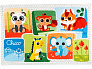 Красочные лесные животные привлекают внимание ребенка, стимулируя любопытство и первые движения лежа на спине и животе.