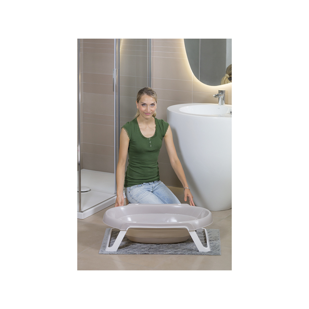 Изготовлена ванночка из мягкого полипропилена для обеспечения максимального комфорта. Прочные закрывающиеся опоры с нескользящими точками контакта с поверхностью, которые гарантируют превосходный уровень устойчивости. Оснащена асимметричной паховой точкой крепления, позволяющей использовать ванночку в двух положениях лежа с рождения и сидя с 6 месяцев для поддержания правильной осанки ребенка на этапе роста, оставляя ему возможность движения руками и ногами.