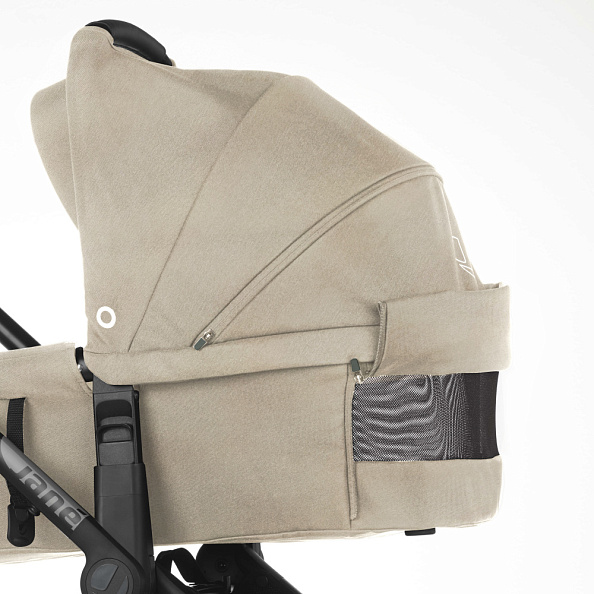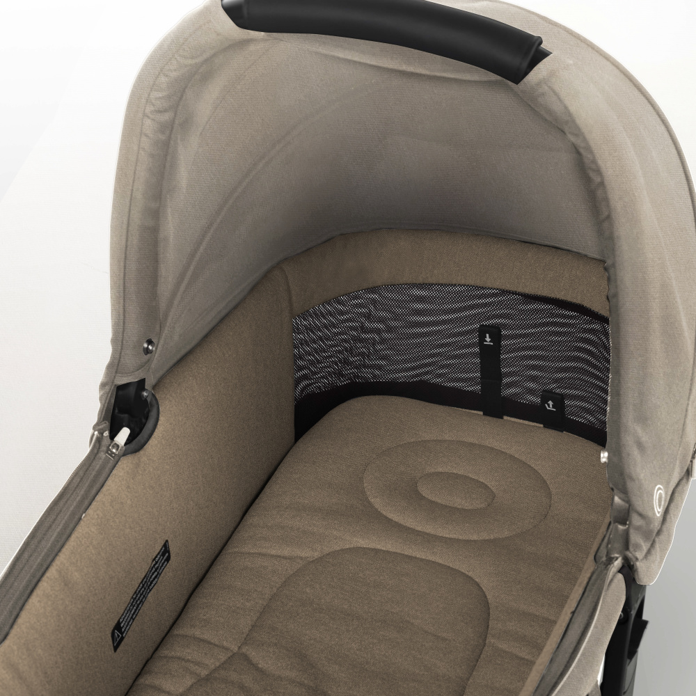- Обивка люльки и прогулочного блока выполнены из премиальных тканей.