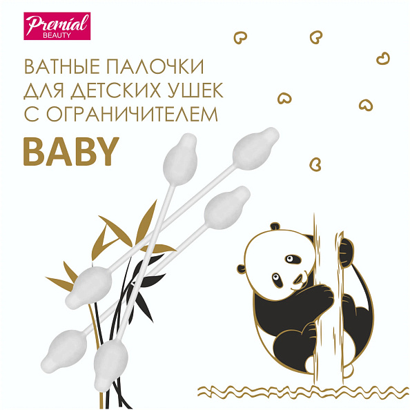 PREMIAL Ватные палочки для детской гигиены с ограничителем 50шт