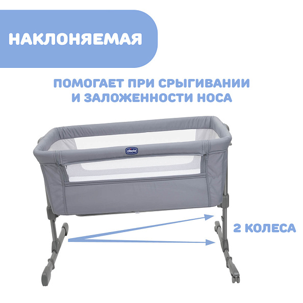 Кроватку можно наклонить, что помогает малышу во время заложенности носа и срыгивании.