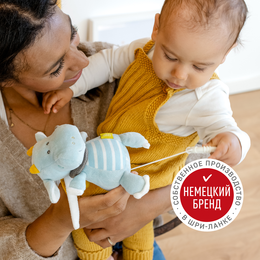 Приятная музыка включается, если потянуть за колечко вниз, музыкальный дракон поможет успокоить ребенка в любой ситуации — дома или в дороге.