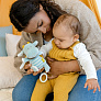 Удобный компактный размер идеально подходит для маленьких детских ручек, а разнообразные текстуры тканей, из которых сшит мягкий друг, очень интересно трогать и изучать.