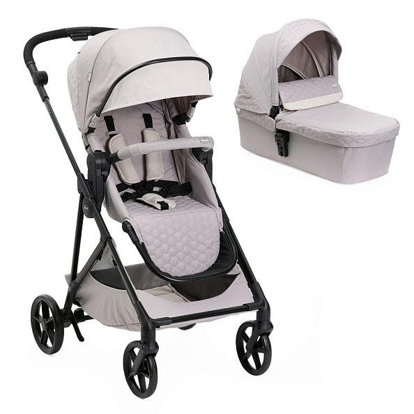 Шасси, люлька, прогулочный блок, набор Comfort Kit (плечевые ремни и разделительный ремень между ног), дождевик и чехол на ножки.