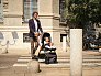 Коляска легко складывается одной рукой вместе с сидением в положениях по ходу и против хода движения. Стоит без опоры в сложенном виде, компактная и легковесная.