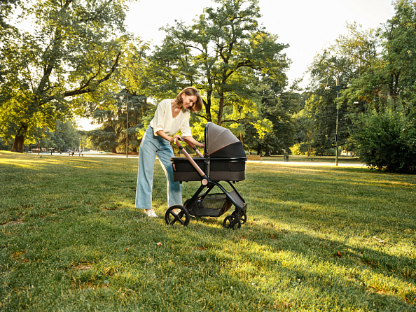 Малышу будет уютно с самых первых дней! Устойчивая и экстралёгкая, весом всего 3 кг. Встроенная ручка для удобной переноски. Супердышащая люлька, благодаря двойной системе циркуляции воздуха: сетчатые секции на капюшоне и в изголовье для вентиляции и визуального контакта.