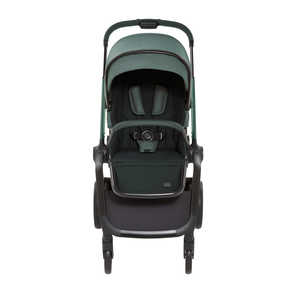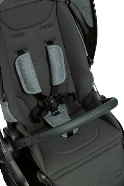 Легко переустанавливается из положения по ходу движения в положение против хода. Широкое и удобное сиденье с высокой спинкой и пятиточечными ремнями безопасности с мягкими накладками, регулируются по высоте в трех положениях. Ручка регулируется в нескольких положениях и имеет премиальное покрытие. Открывающийся бампер с премиальным покрытием.