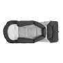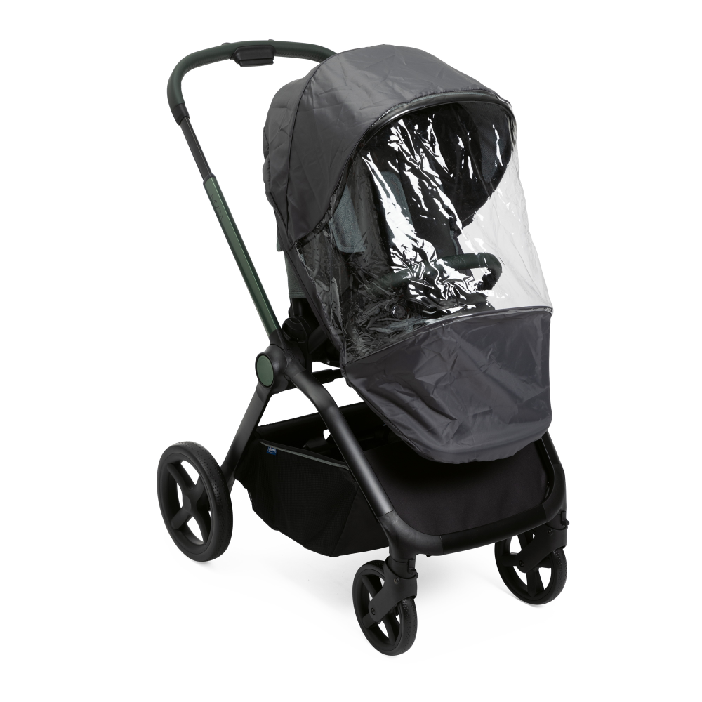 Большой капюшон со смотровым сетчатым окошком, защитой от солнца UV50+ и водоотталкивающим покрытием.
