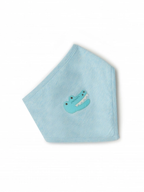 Мягкие и приятные на ощупь трикотажные штанишки цвета неба раннего южного утра с манжетой внизу для надежной фиксации на ножке. "Верх" и "низ" можно носить вместе и отдельно в зависимости от погоды. Милый образ завершает нагрудник в цвет штанишек, украшенный аппликацией в виде «крокодильчика».
