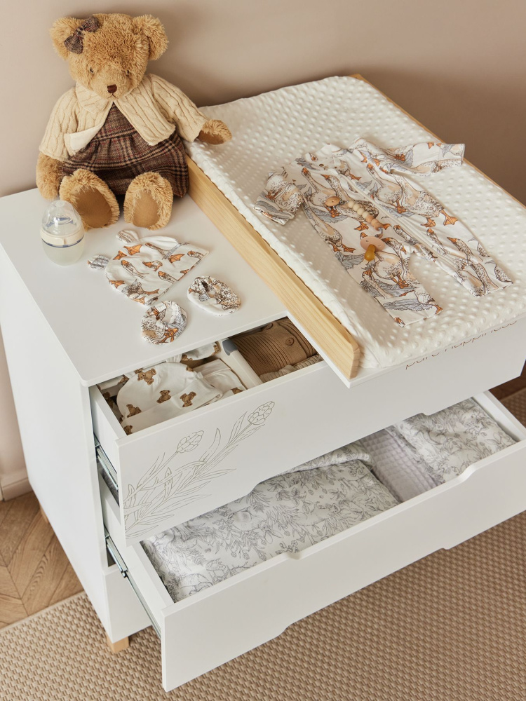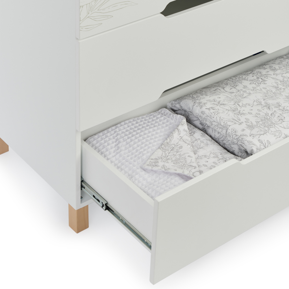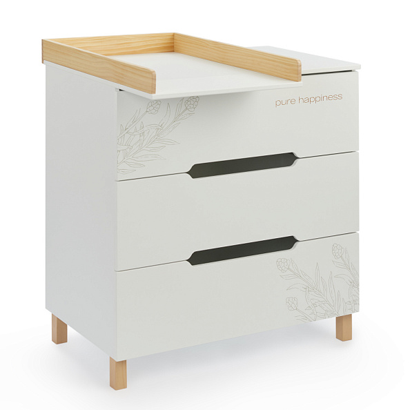 Комод Fioki станет важной частью вашей детской комнаты. Просторные ящики обеспечат хранение всех необходимых вещей для малыша: средств по уходу, пелёнок, одежды и постельного белья. Ящики легко и бесшумно открываются, не нарушая сон ребёнка, а ножки из натурального дерева придают комоду дополнительную устойчивость. Съемный пеленальный столик делает уход за малышом еще проще и удобнее, а его бортики обеспечивают дополнительную безопасность.
