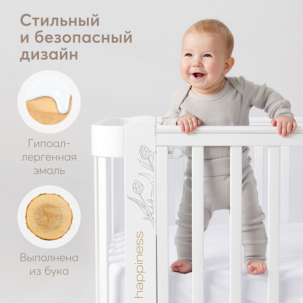 - Кровать-трансформер: люлька: 100x70 см; кровать: 160x70 см