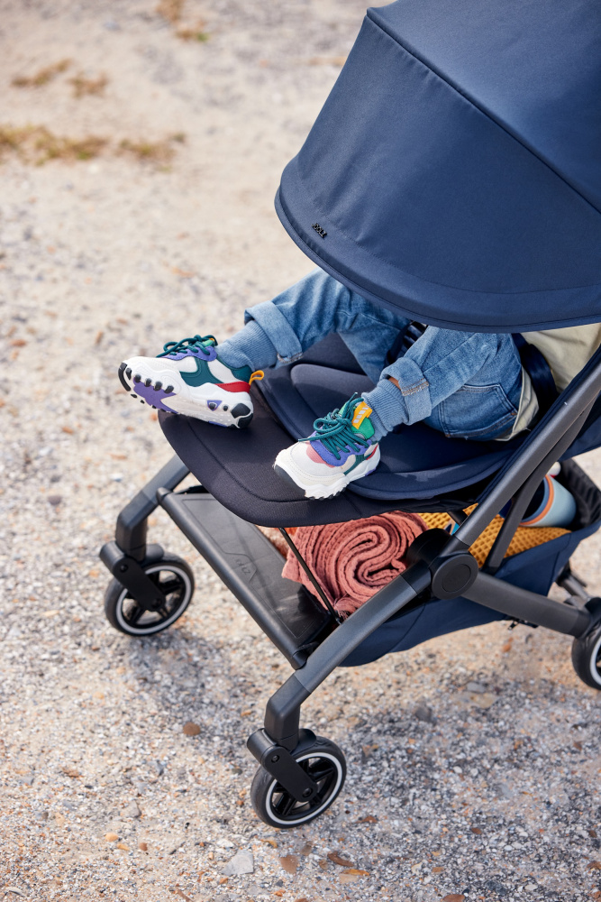 Эргономичное просторное сиденье, длинная раскладывающаяся спинка, большой солнцезащитный капюшон с вентиляцией, амортизация всех колес и стильный дизайн делают Aer+ идеальной для комфортных прогулок и захватывающих путешествий с ребенком!