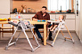 У столика с большим съемным подносом 4 положения. Когда столик не используется, он крепится на задних ножках.