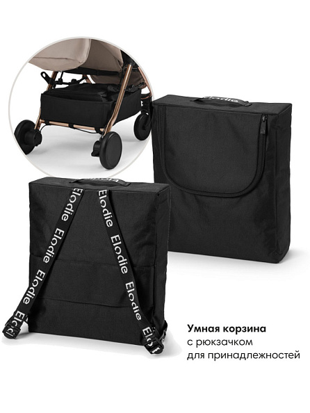 Когда пришло время складывать коляску в дорожный размер или когда вы хотите, чтобы ваши уложенные вещи были под рукой, просто застегните корзину для хранения, и она за считанные секунды превратится в рюкзак. Рюкзак может быть прикреплен к вашей ручной клади. Эта функция очень удобна при входе в салон самолета, ведь чтобы сложить коляску, корзина для принадлежностей должна быть освобождена.